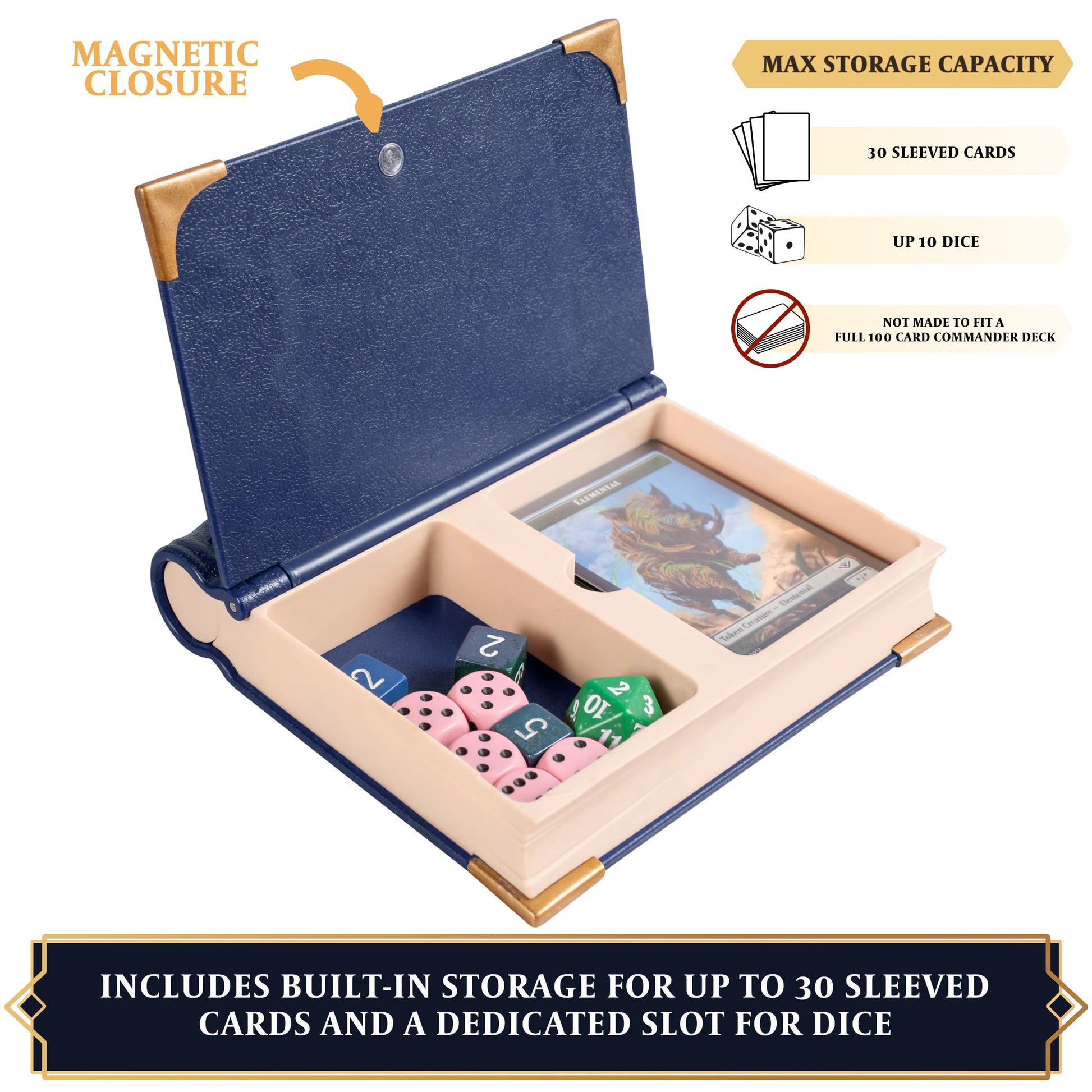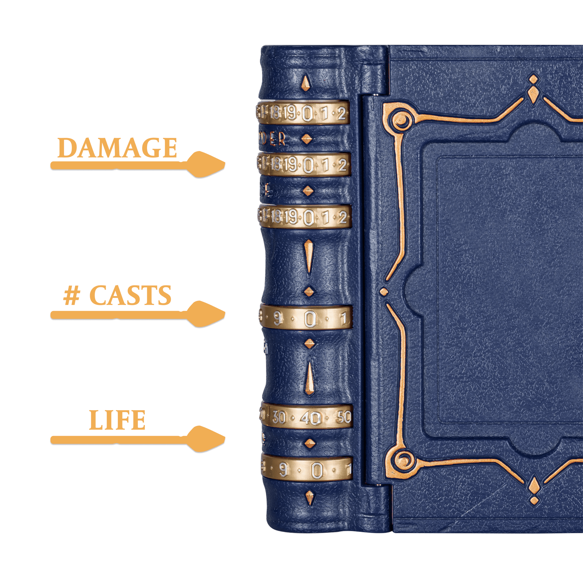 The MTG Commander's Codex is a book-shaped command zone designed to track every crucial game element, including life totals, commander casts, and commander damage—all in one sleek, immersive accessory. Featuring click-to-position number dials, a dedicated commander slot, and a hidden storage compartment for dice and up to 30 tokens, the Codex enhances organization while keeping gameplay smooth and uninterrupted. With its reversible design, compact footprint, and intricate detailing, the Commander's Codex is the perfect tool for casual and competitive Commander players alike. Have fun with a stylish, functional, and immersive way to track your matches!